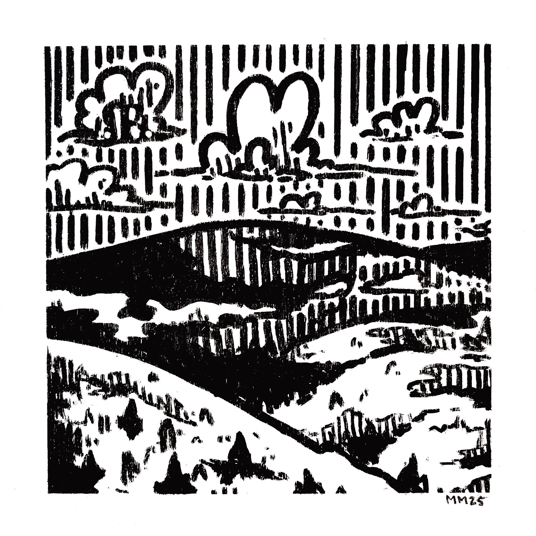 Her work is rooted in traditional pen and line techniques, a medium she values for her precision and meditative rhythm. This process offers both structure and freedom, allowing her to explore the border between organic softness and intentional organization, to work with mistakes as they arise and to keep energy moving through her work.