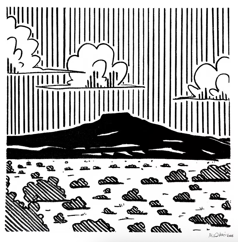 Mari Mathieu is a New Mexican & Chicana artist born and raised in Santa Fe. She spent her childhood on backroads and open stretches of land, studying the places where clouds gather, disperse, and reshape the light. That sense of scale and movement continues to guide her artistic practice today.